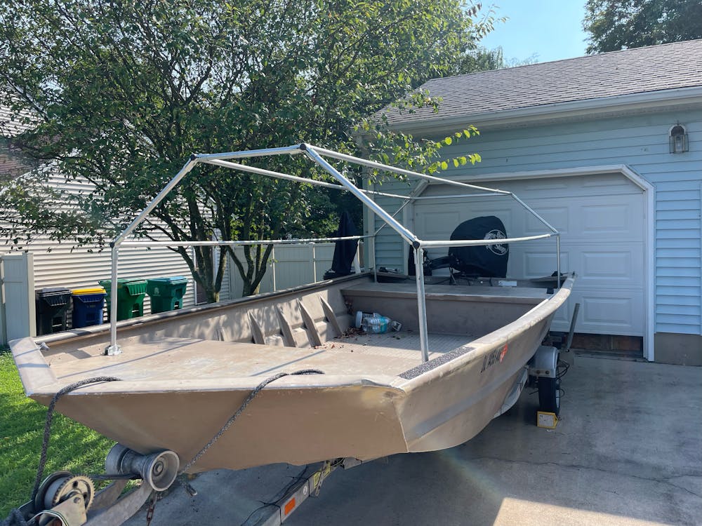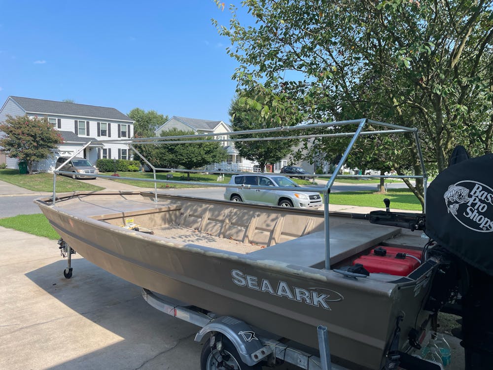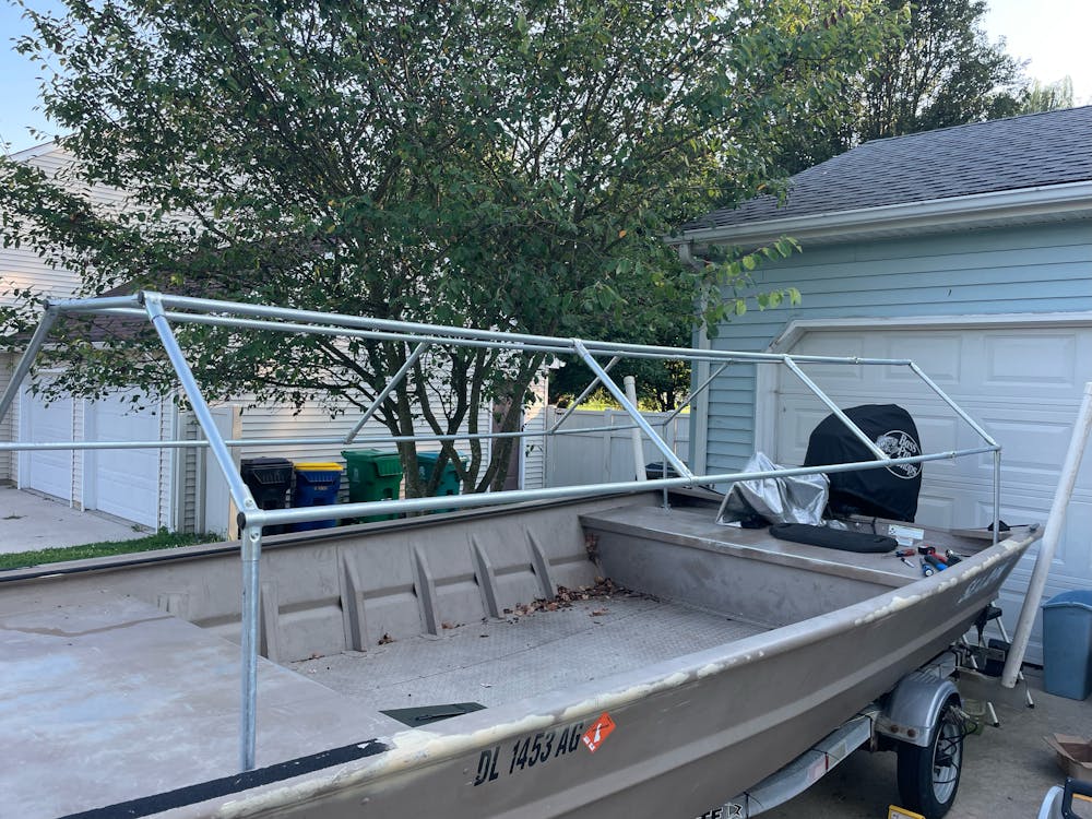 Stephen shared some photos of his boat blind frame! I love the overall shape and design that utilizes the 135 Degree Connectors.