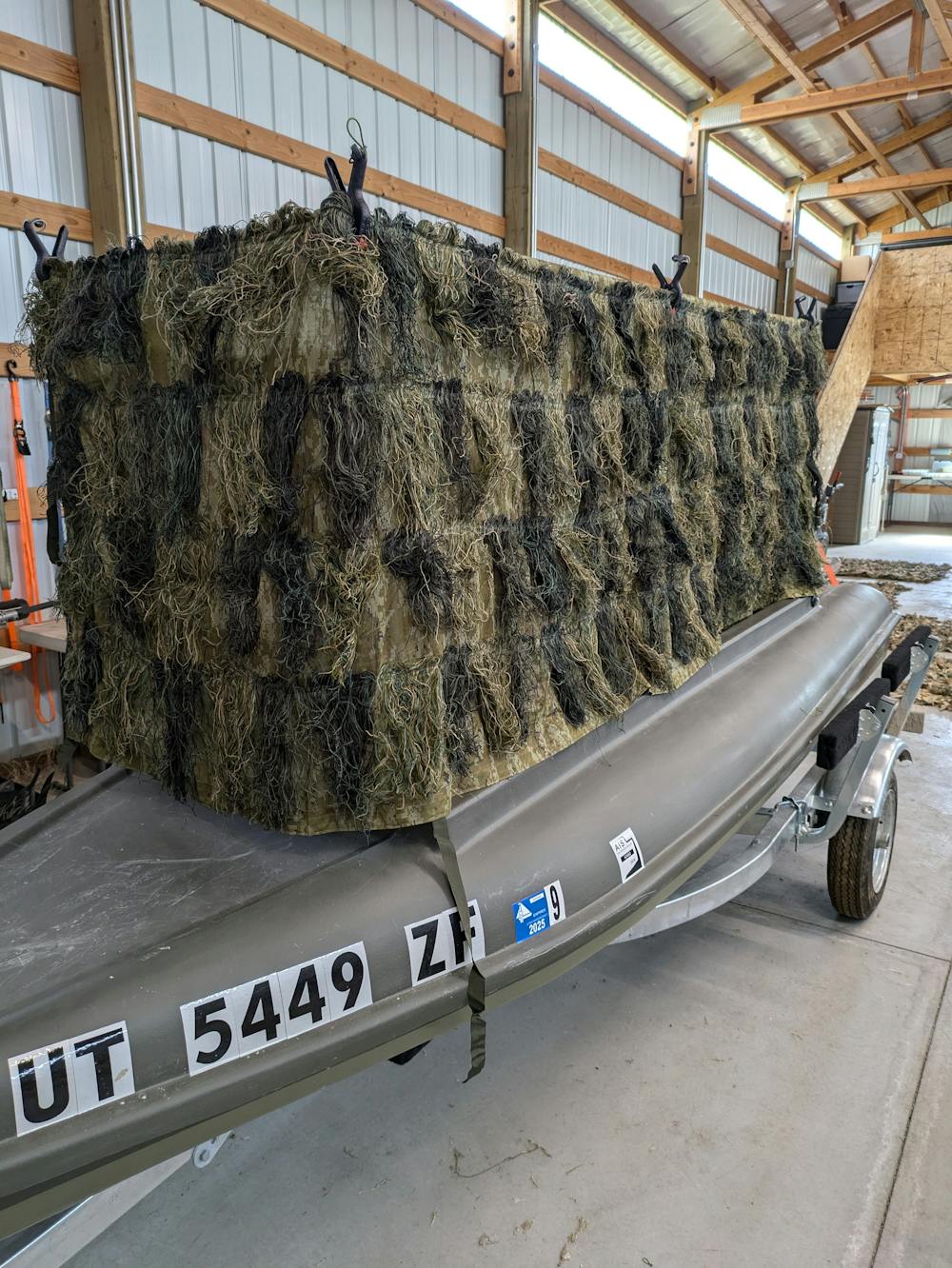 I had some wooden dowels made with a center hole drilled 6 inches deep leaving the bottom 2” of each dowel solid. Finally, I bought some ghillie netting from Macks Prairie Wings. When sitting on chairs inside the blind, the top of the blind is at eye level. It is made to easily assemble and disassemble in the field. Takes about 5 minutes either way. Hope to finally get out by Friday to see if it will work." - Bob