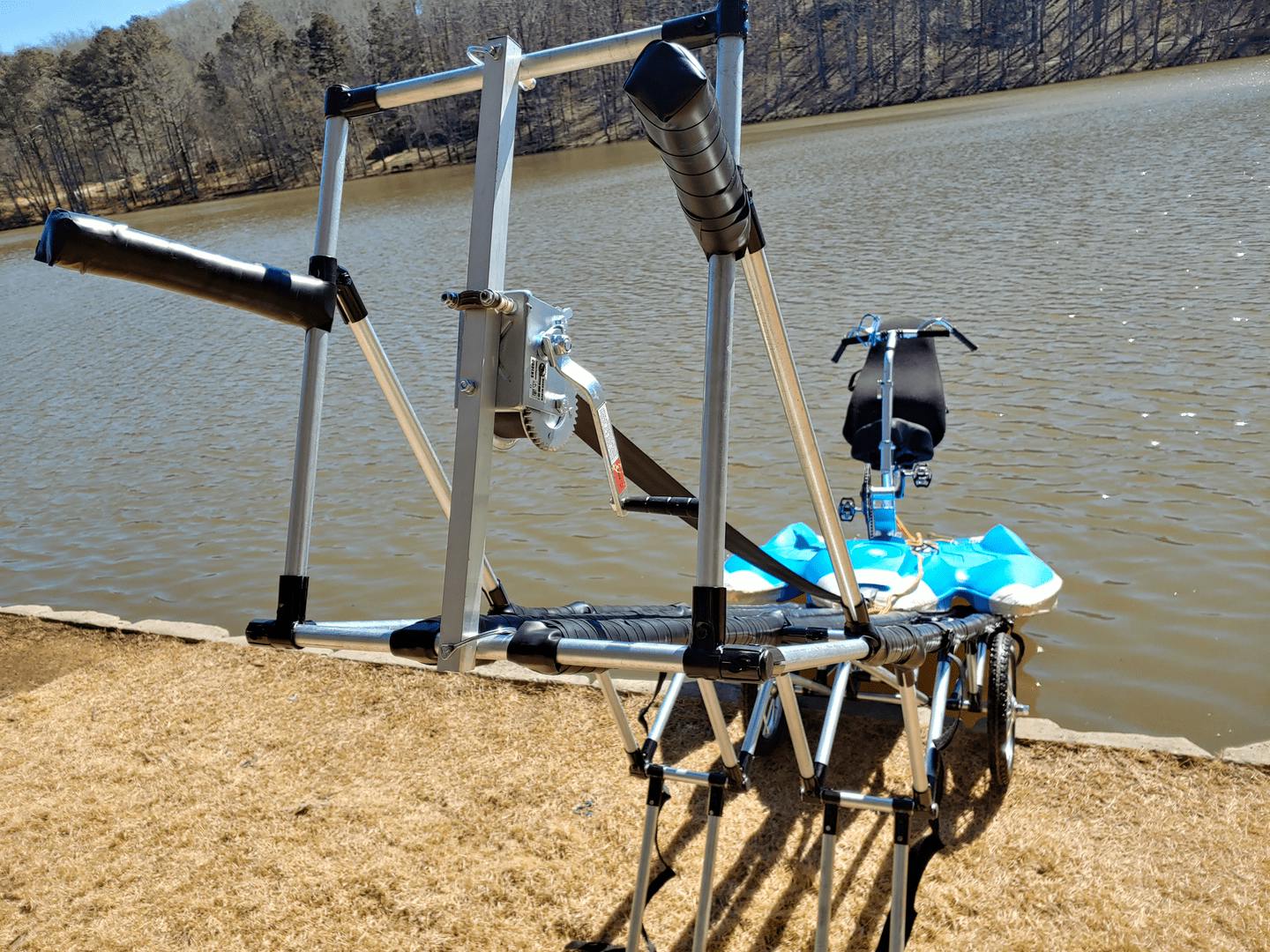 I live on a lake, but we can't have docks on this lake. The shoreline has a stone sea wall, making it difficult to get my boats into and out of the water, especially since they all have pedal-driven propellers and fins going down into the water15 inches or so.