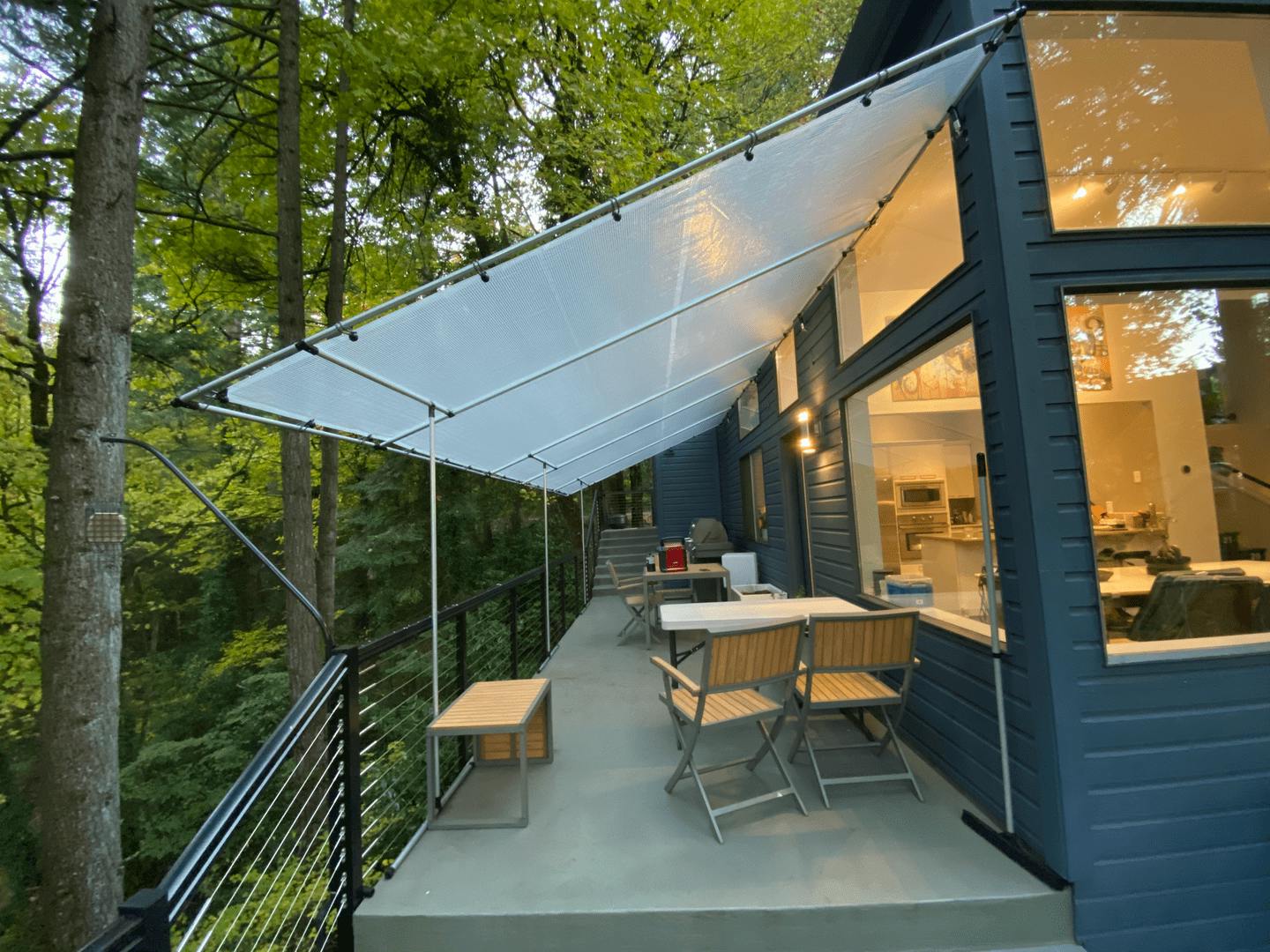 Converting our Pacific Northwest treehouse deck into a dry space for safe social distanced outdoor grilling and shared couples meals.