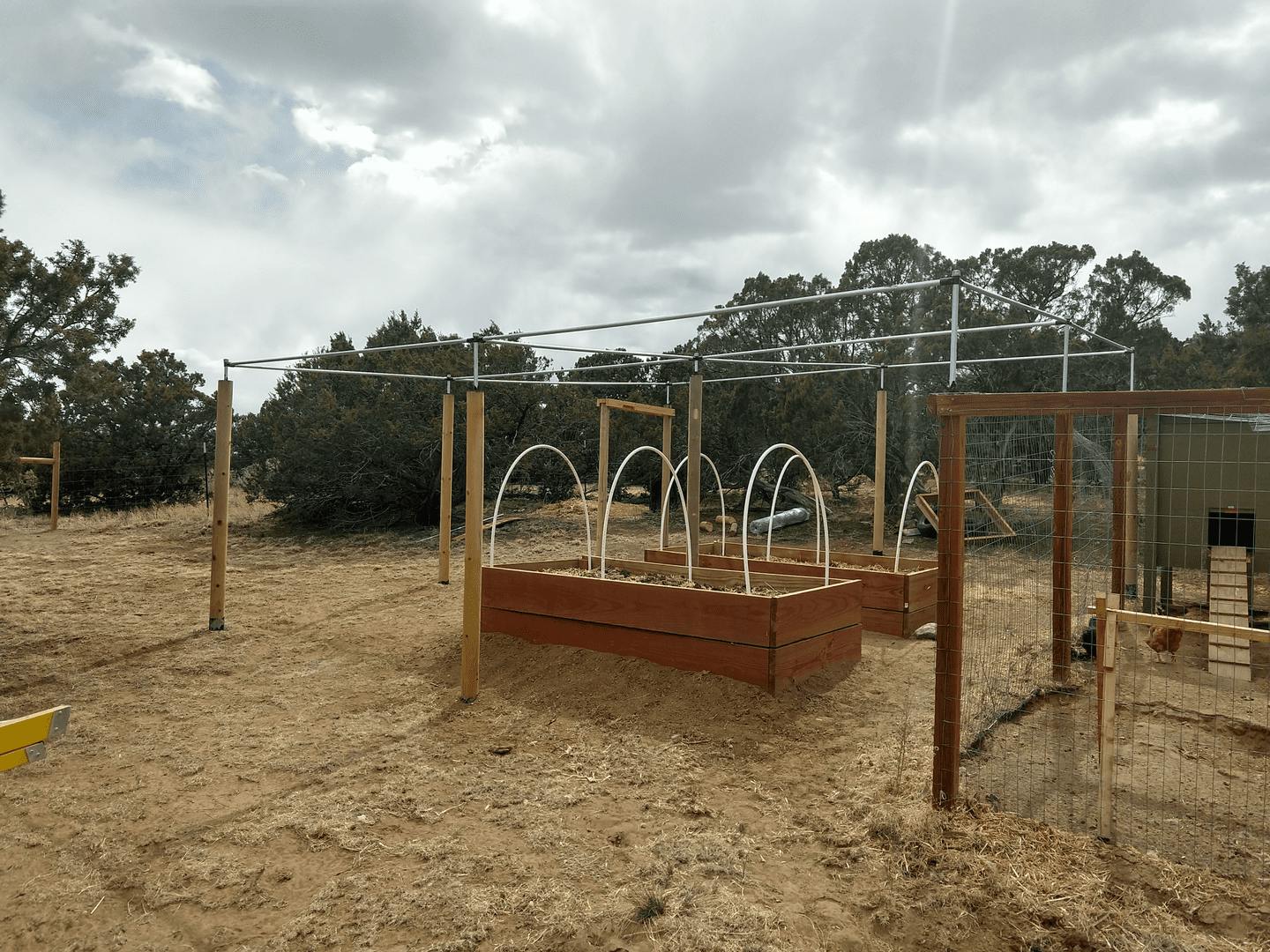 Covering my wife's garden to keep the deer and squirrels out. Need to add chicken wire now.