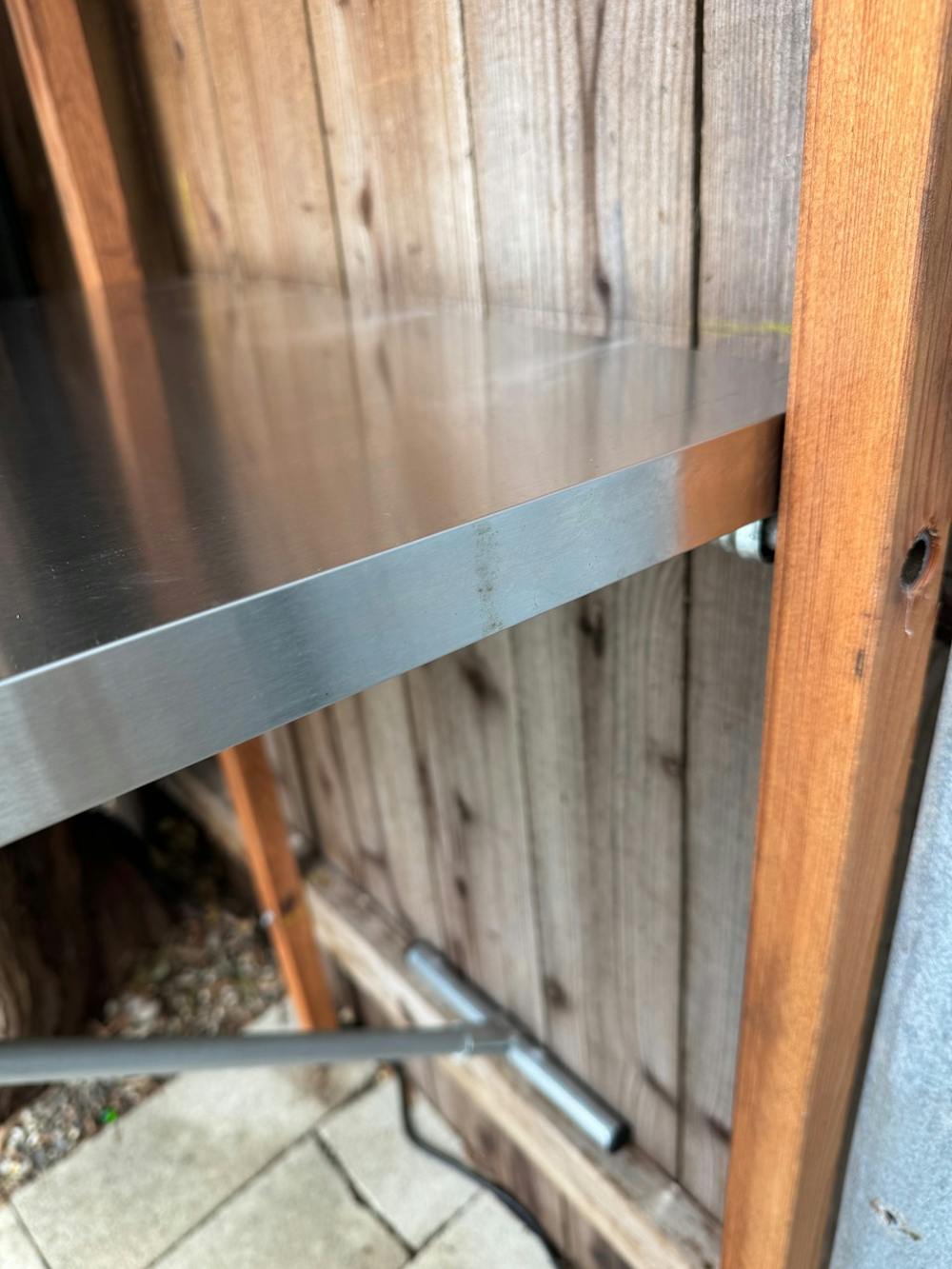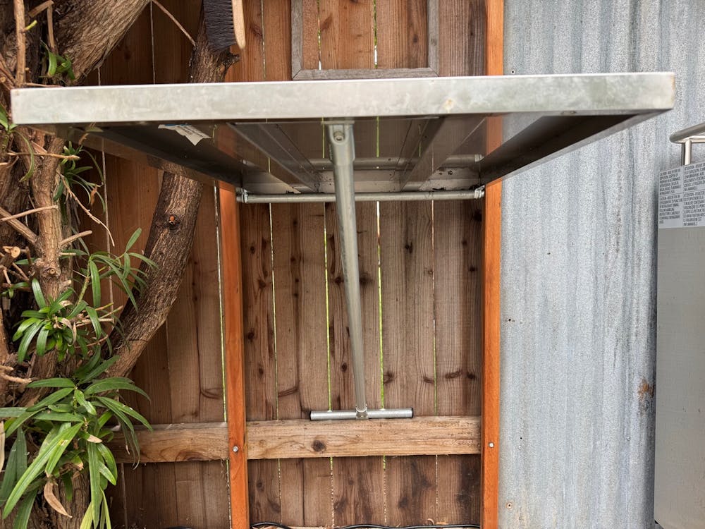 "Adding on to my backyard kitchen with a folding steel table. The half inch conduit fits nicely inside 3/4 inch conduit, making a pin type of hinge"