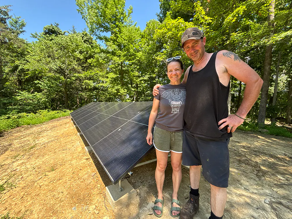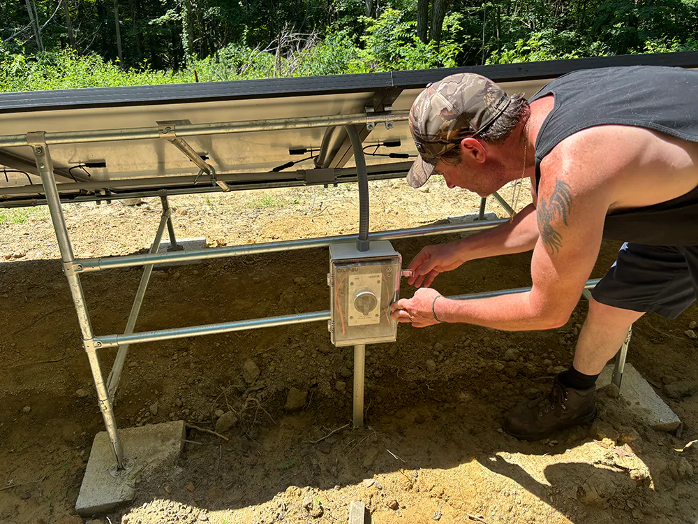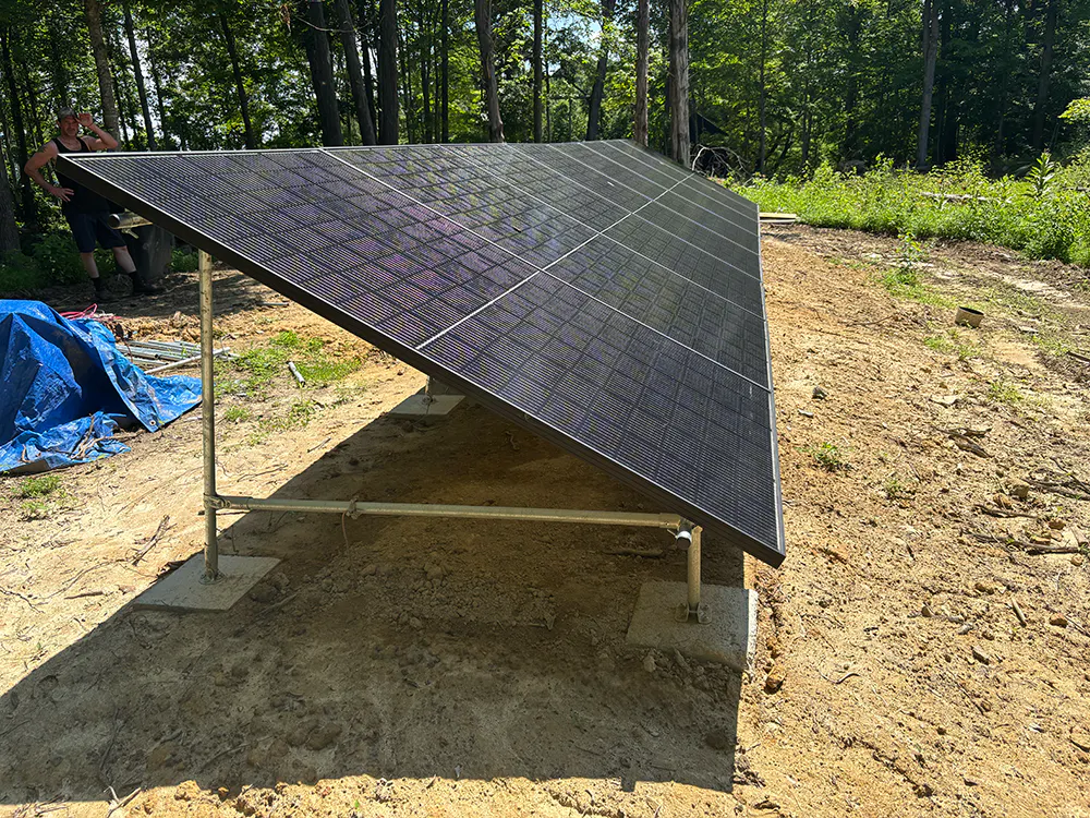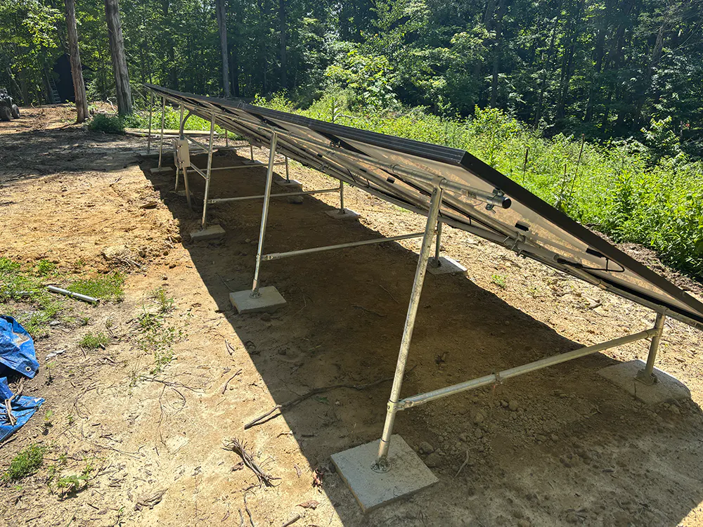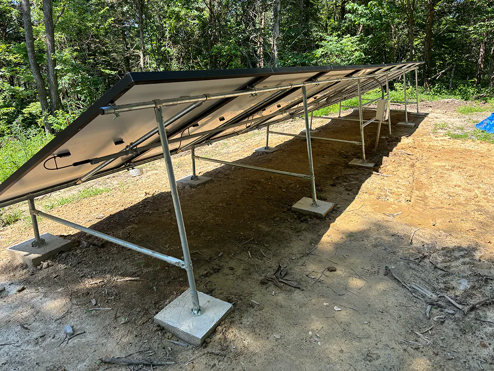 Meg and Jon from Walnuts and Wineberries recently finished this awesome solar panel setup. It is a pole house system for 8 total solar panels and is made entirely out of 1" EMT Conduit and Maker Pipe Fittings. It's totally off the grid and is offsite from the large office/workshed that it powers. It was originally made to be adjustable, but Jon isn't sure if that's going to be needed.