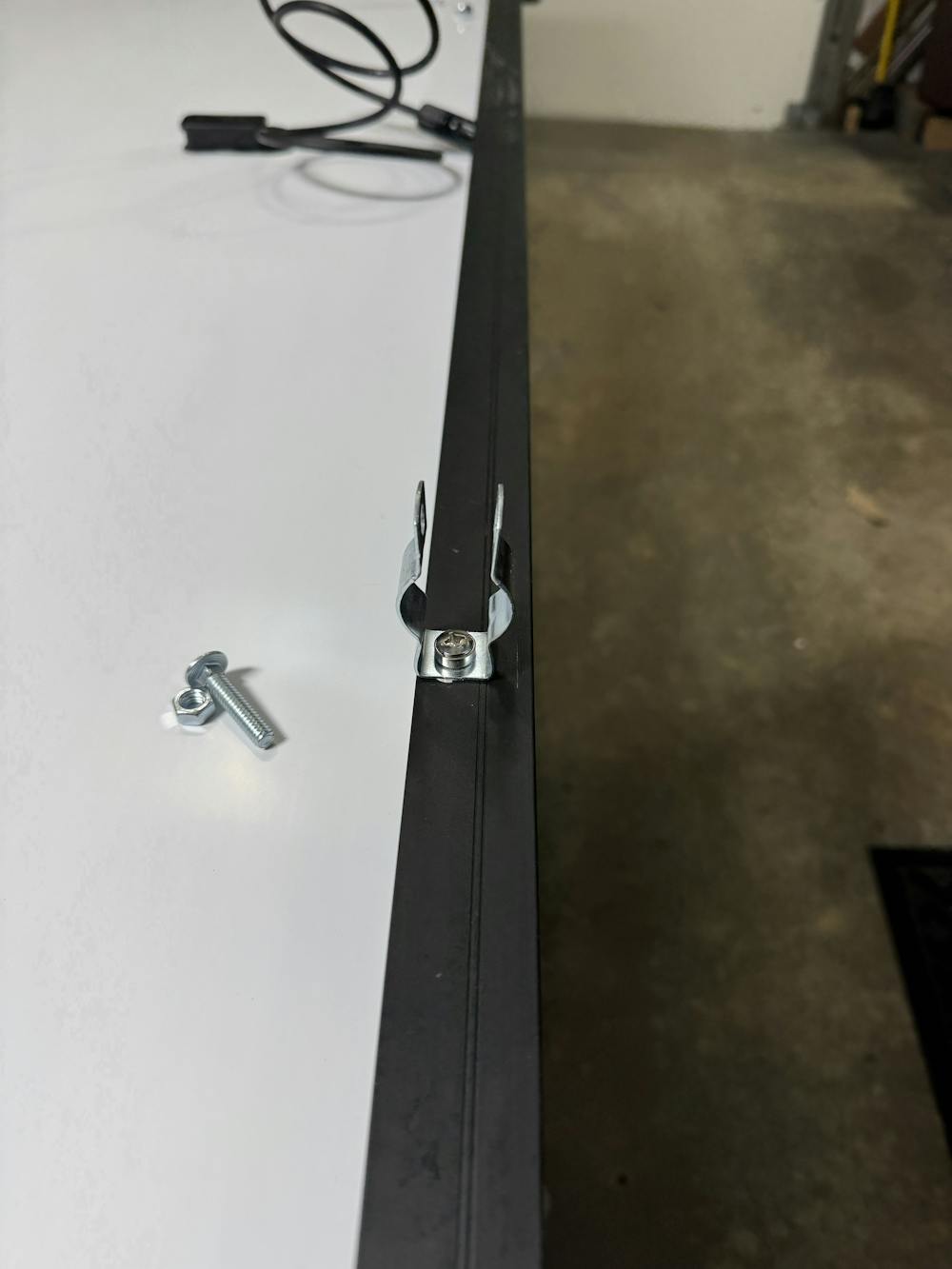 As shown in the pictures, I simply fastened the EMT conduit mounting straps to the predrilled holes in the aluminum solar panel frames. I then cut a 10 ft length of 3/4 in. EMT conduit in half. Fastened a 5 ft section of the conduit into the mounting straps on each side of the panel. I then fastened the adjustable angle hinge connector to the top of the left and right side conduit, just beneath the mounting strap. I then fastened a desired length of 3/4 in conduit into the adjustable angle hinge connector for my adjustable stand legs. Capped the bottom with rubber pipe feet and will cap the top with end plugs. The adjustable hinge connectors are fastened with the quick clamps for quick adjusting of the leg angle. I am awaiting telescoping clamps for the legs. I will cut a length of 1/2 in EMT conduit and slide it into the 3/4 in conduit leg for adjusting the length of the leg. This will allow for adjusting the angle of the solar panels for optimum performance.